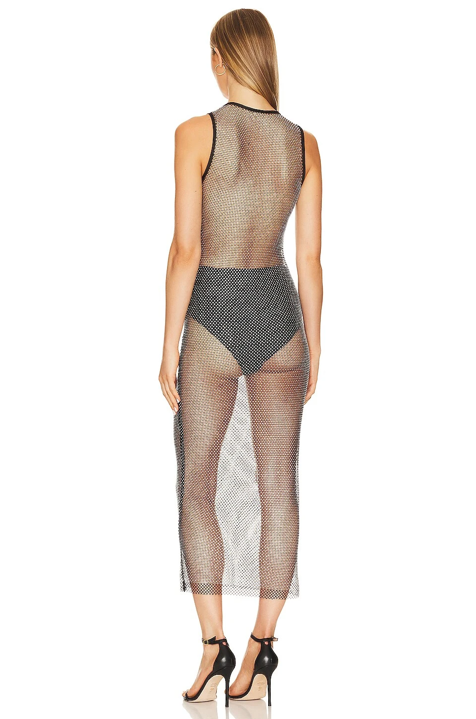 - Open knit fabric with rhinestone embellishments throughout