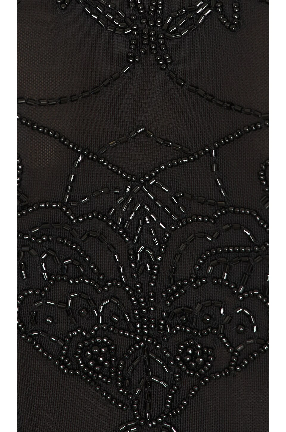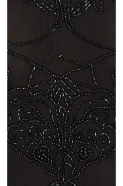 - Mesh fabric overlay with floral beaded embellishments throughout