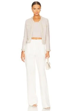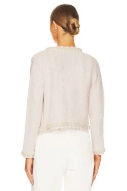 Alice + Olivia Noella Knit Jacket With Pearls Sand Marl & Pearl