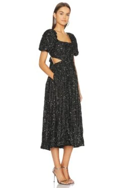 Side slant pockets - Tonal tinsel at sequin embellishments throughout