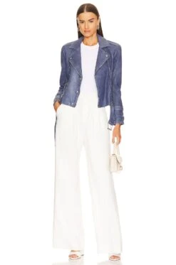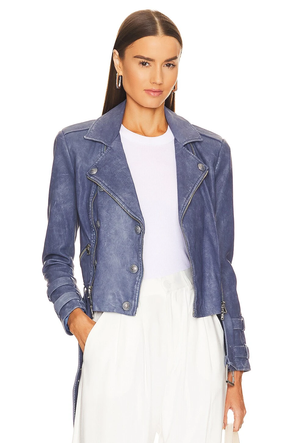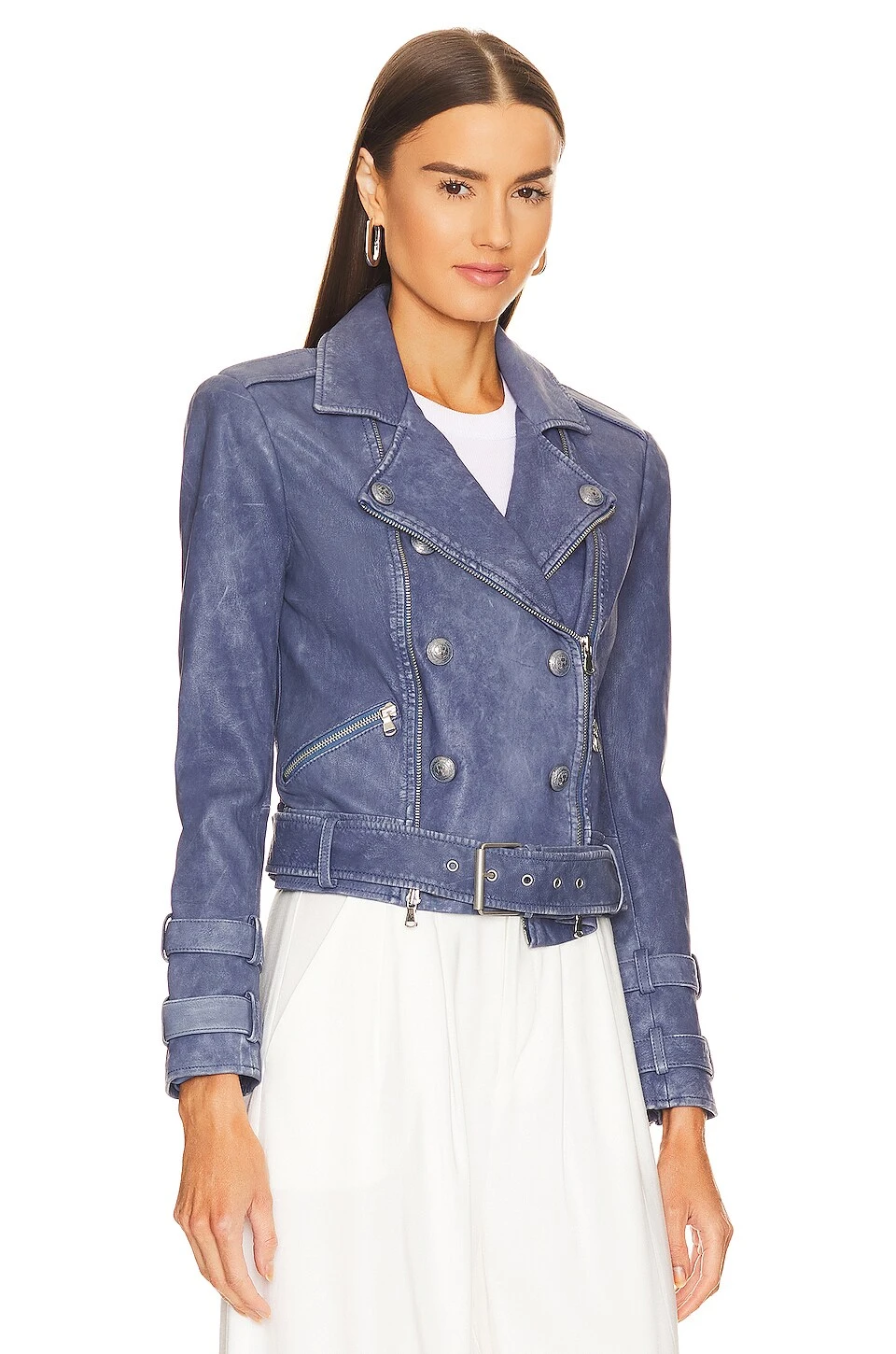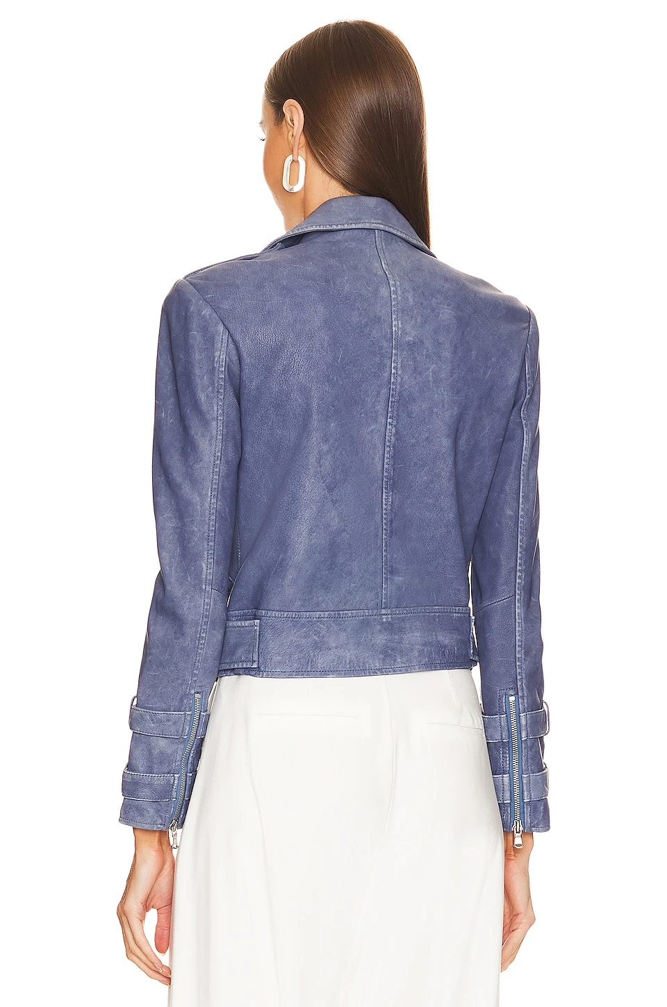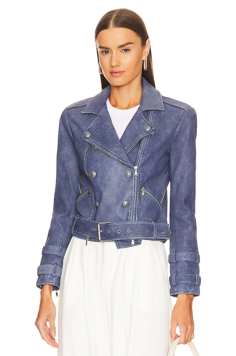 Billie Belted Leather Jacket Washed Indigo