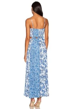 Holland Tie Pleated Dress Mykonos Blue Porcelain