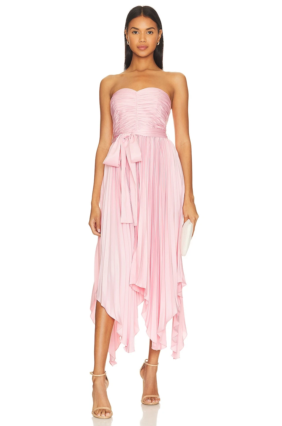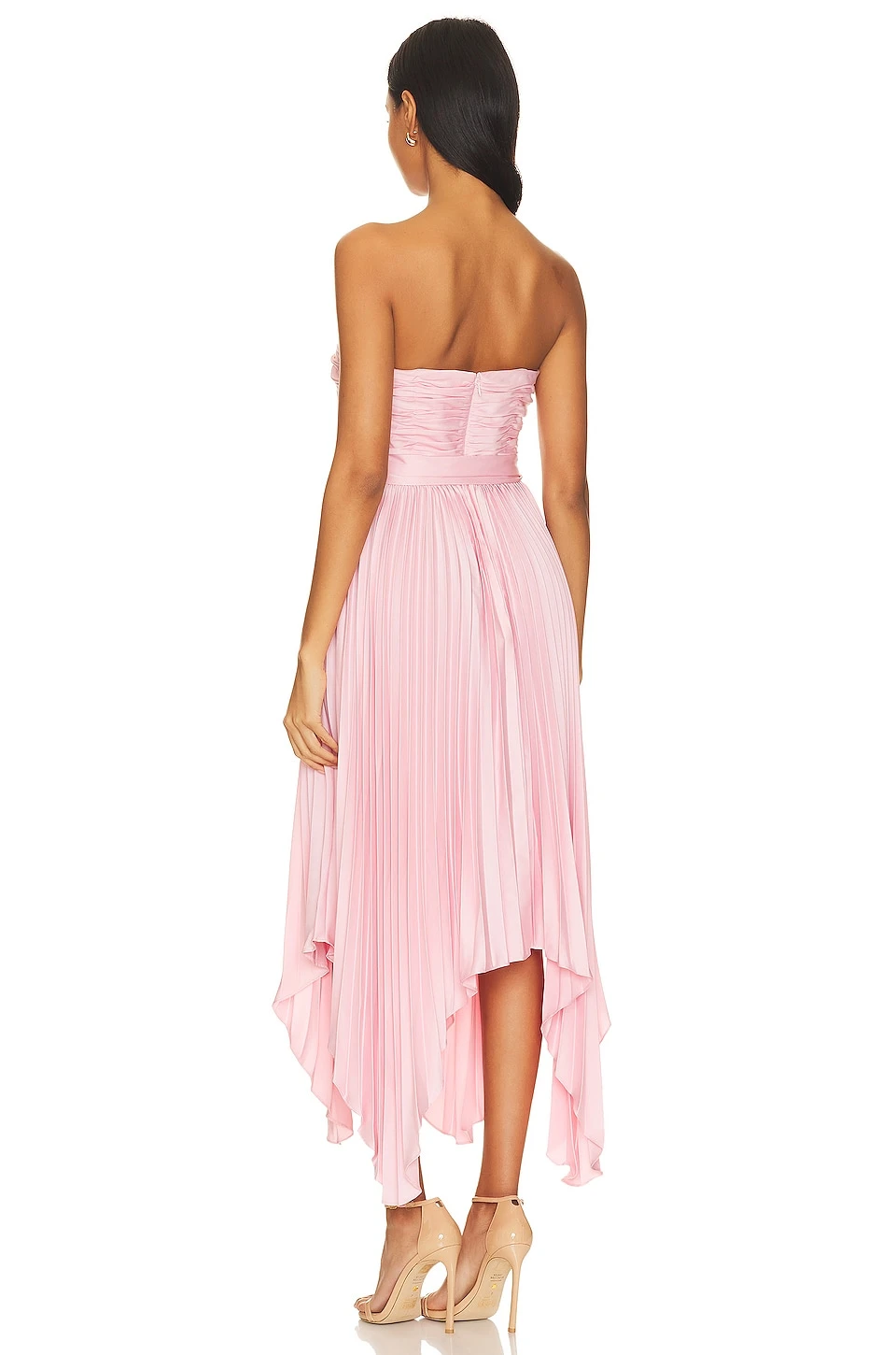 - Plisse satin fabric with asymmetrical hem