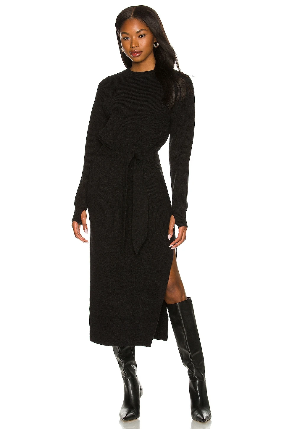 Attached waist tie - Ribbed knit fabric with side seam slit