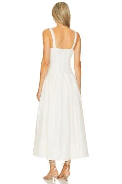 Makenna Drop Waist Corset Midi Dress Off White
