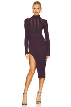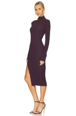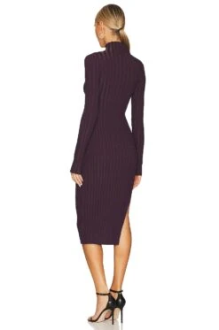 Marinel Turtleneck Knit Midi Dress Dark Purple