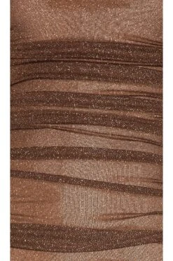 - Ruched mesh fabric with all over glitter detail