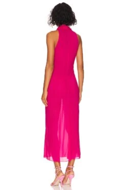 Sheer Turtleneck Slip Dress Fuchsia Pink