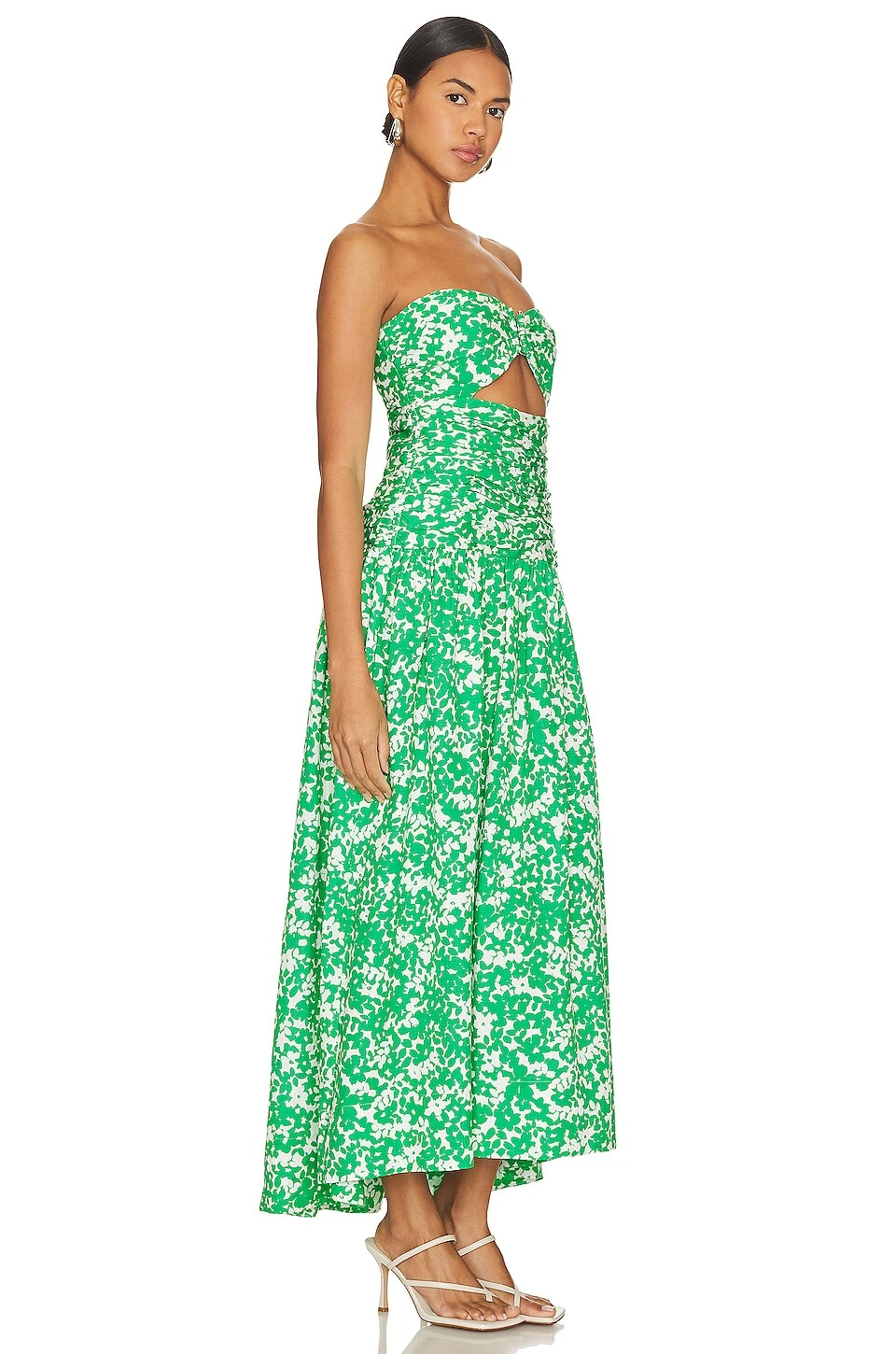 Shona Joy Arosa Strapless Cut Out Midi Dress Tree Green & Vory