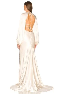 Shona Joy La Lune Balloon Sleeve Open Back Maxi Dress Cream