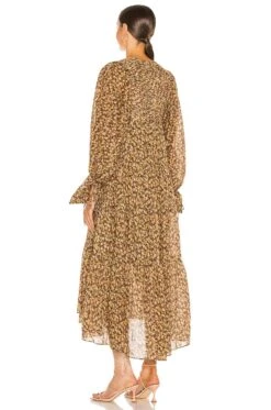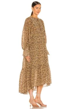 Shona Joy Pin Tuck Balloon Sleeve Midi Dress Chocolate & Multi