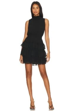 Sleeveless Mock Neck Ruffle Dress Rich Black