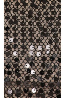 Self: 95% nylon, 5% elastane.Lining: 95% polyester, 5% spandex. Made in Australia. Hand wash. Partially lined. Hidden back zipper closure.Back tie detail. Back vent. Sequined mesh fabric overlay. Revolve Style No. NKIE-WD566. Manufacturer Style No. NMJJ2217.