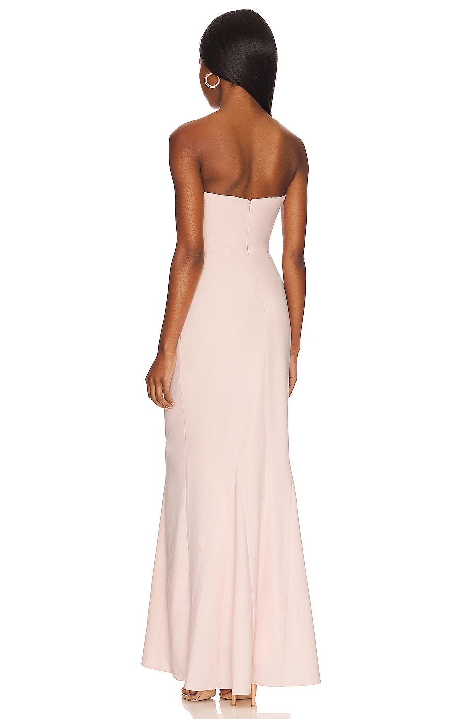 Self: 96% polyester, 4% elastane.Lining 1: 97% polyester, 3% elastane.Lining 2: 89% polyester, 11% elastane. Made in China. Hand wash. Fully lined. Hidden back zipper closure. Internal bustier with unpadded wired cups.Boned sides. Ruched side. Neckline to hem measures approx 54″ in length. Revolve Style No. LOVF-WD3424. Manufacturer Style No. ACD1717 S22.