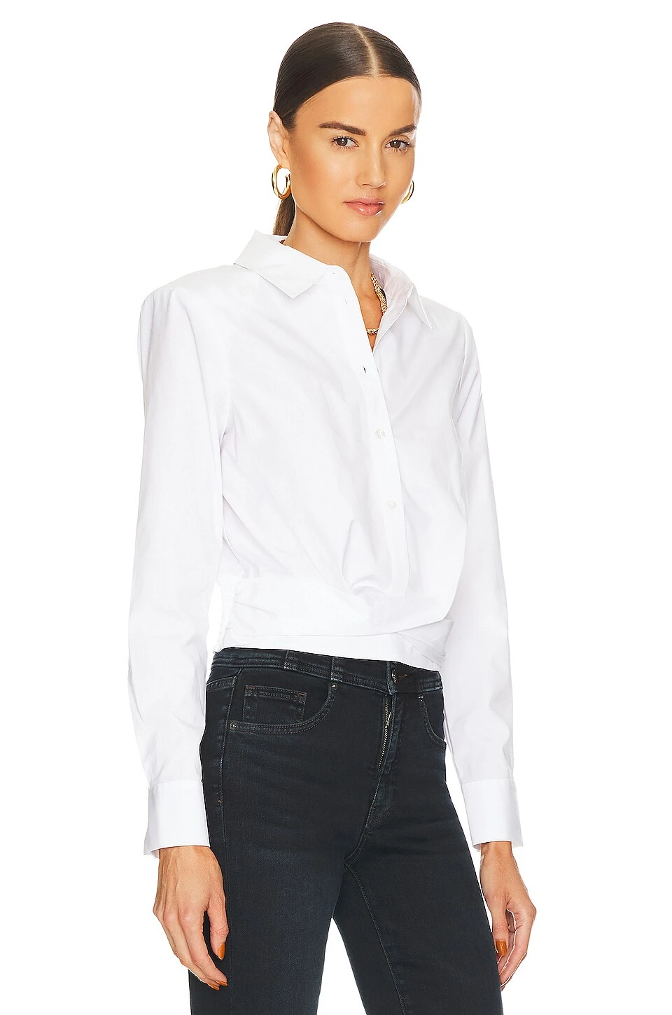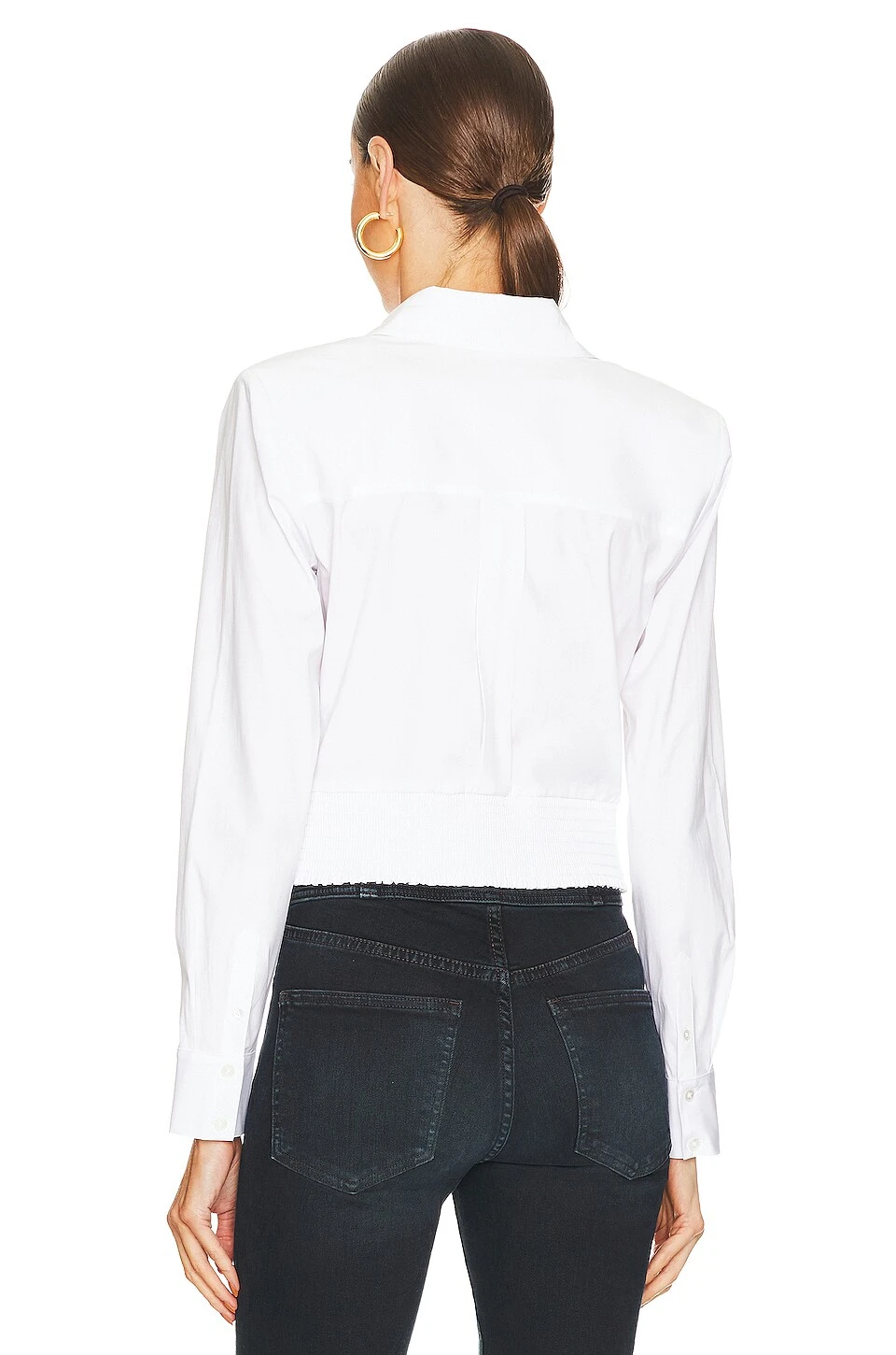 Twist front detail at front hem with smocked back panel - Buttoned cuffs