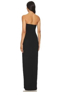 100% polyester. Made in USA. Dry clean only. Partially lined. Hidden back zipper closure. U-wired neckline and boned sides. Crepe twill fabric with side slit. Neckline to hem measures approx 56″ in length. Revolve Style No. AMAN-WD1845. Manufacturer Style No. CI-22152.